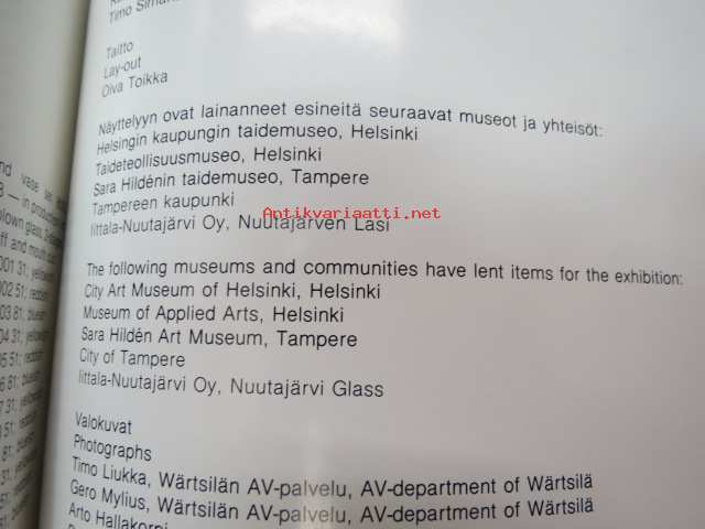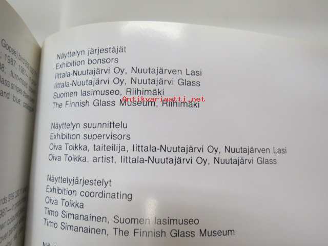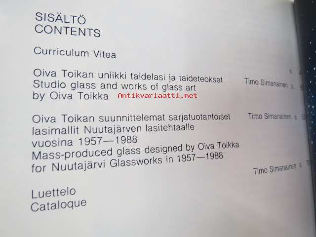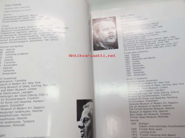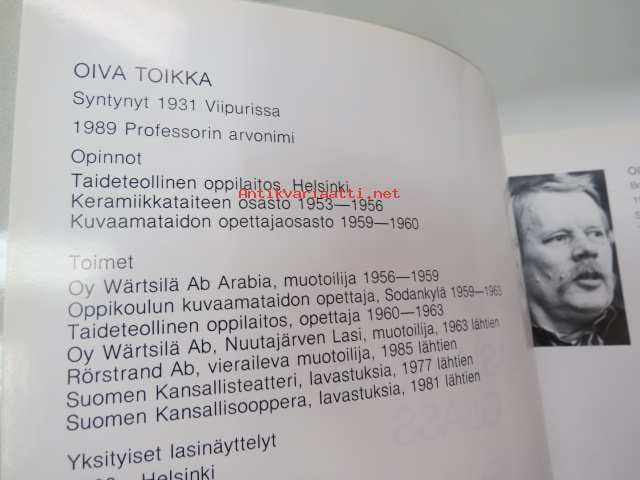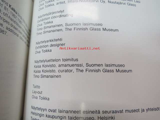 Oiva Toikka Lasia Glas Glass 1988 Suomen Lasimuseo näyttelykirja / The Finnish Glass Museum -exhibition book, tekijän omiste / author´s dedication