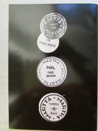 | Saatavilla | 0 kpl (Huom. tuote on myyty! / Sold out!) | | Julkaisuvuosi | 1989 | | Sivuja | 88 | | Painos | 1. | | Kunto | K3 | | Sidonta/painoasu | Nidottu (pehmeäk.) | | ISBN | 951-9125-70-1 | | Kielet | Suomi |