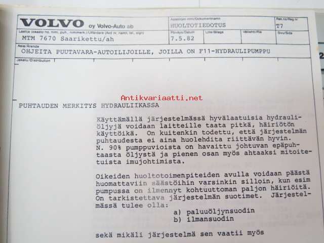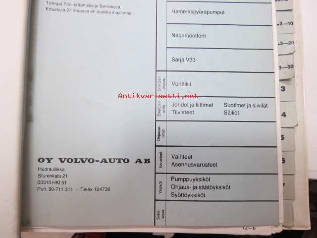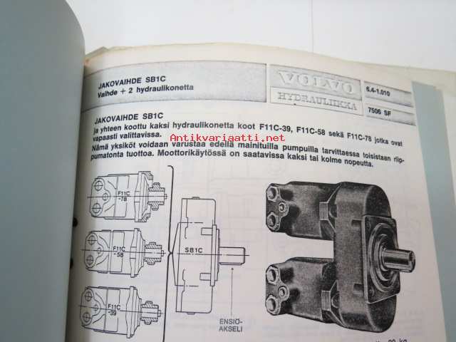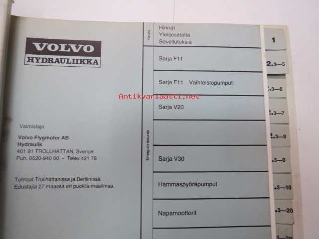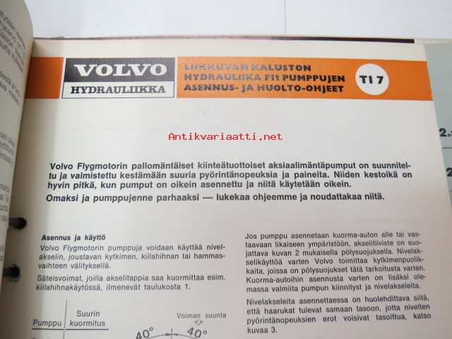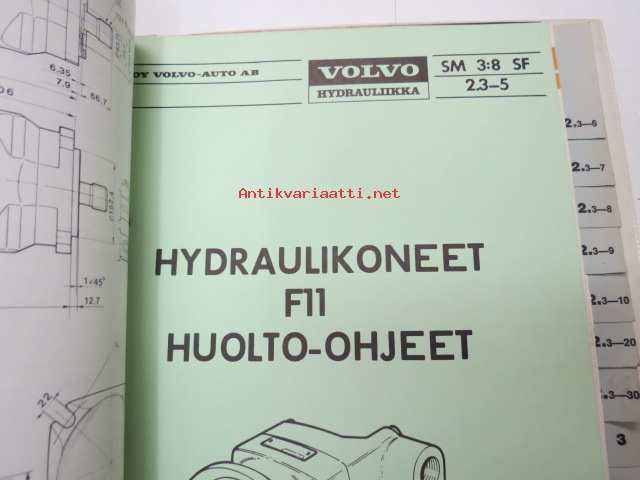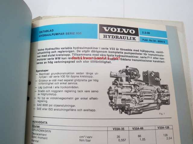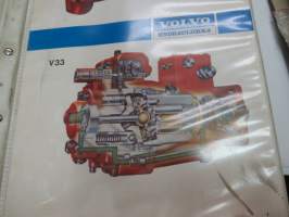 Volvo hydrauliikka F11, V30, V33 teknistä tietoa, esitteitä, ohjekirjoja -tehtaan alkuperäinen kansio -factory original hydraulics binder with manuals, brochures