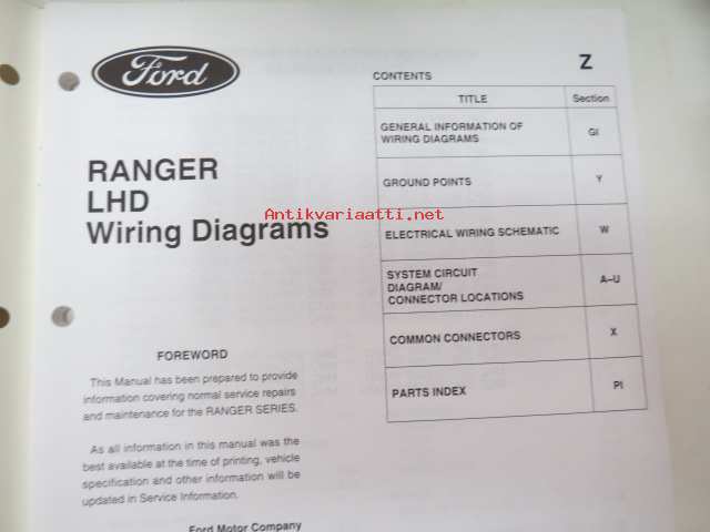 Ford Ranger 1999 Wiring Diagrams (CG 1651 en LHD 01/99) -sähkökaaviot
