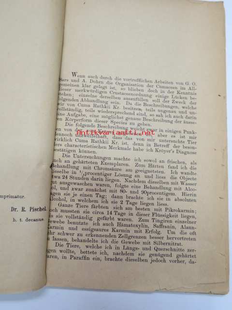 Beiträge zur Anatomie un Histologie von cuma Rathkii kr. - Inaugural-Dissertation zur Erlangung der doctorwürde der philosophischen Facultät der Christian-Albrechts-Universität zu Kiel vor gelegt von Johannes Burmester aus Kellinghusen -väitöskirja / dissertation