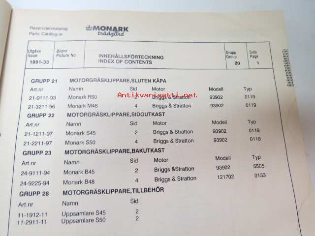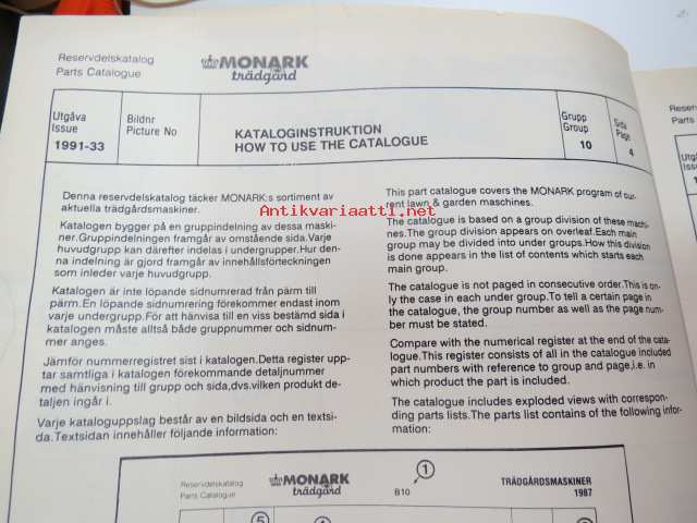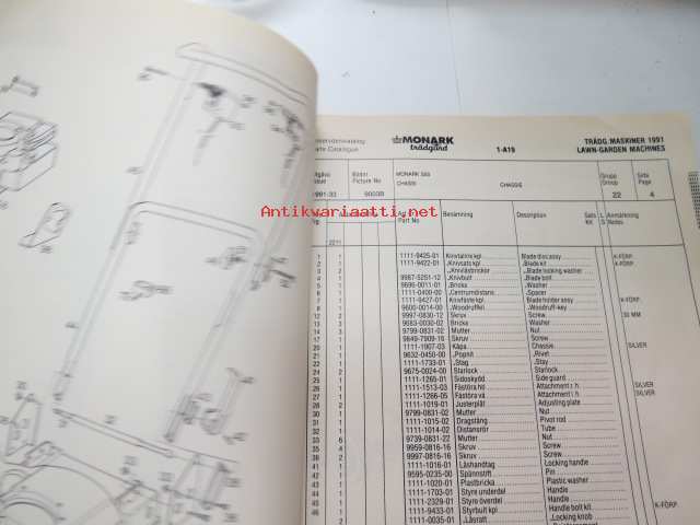 Monark Trädgårdsmaskiner 1991 / Lawn & Garden Machines 1991 -reservdelskatalog - parts catalogs - varaosaluettelot mallivuoden koneisiin