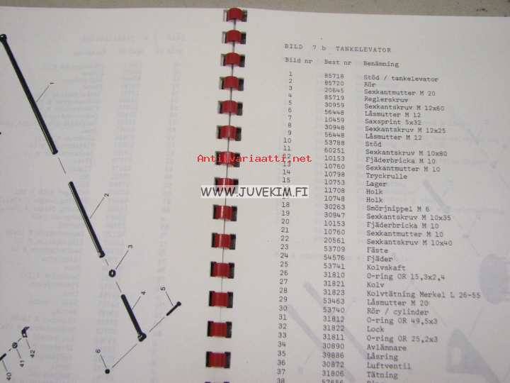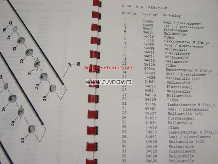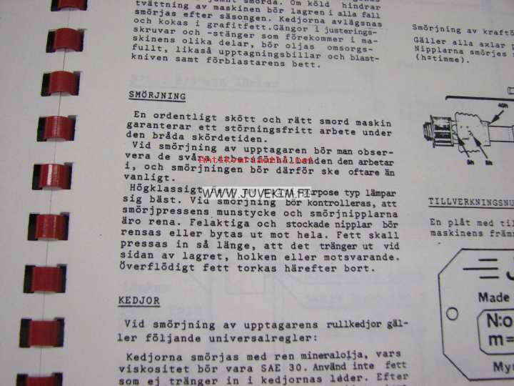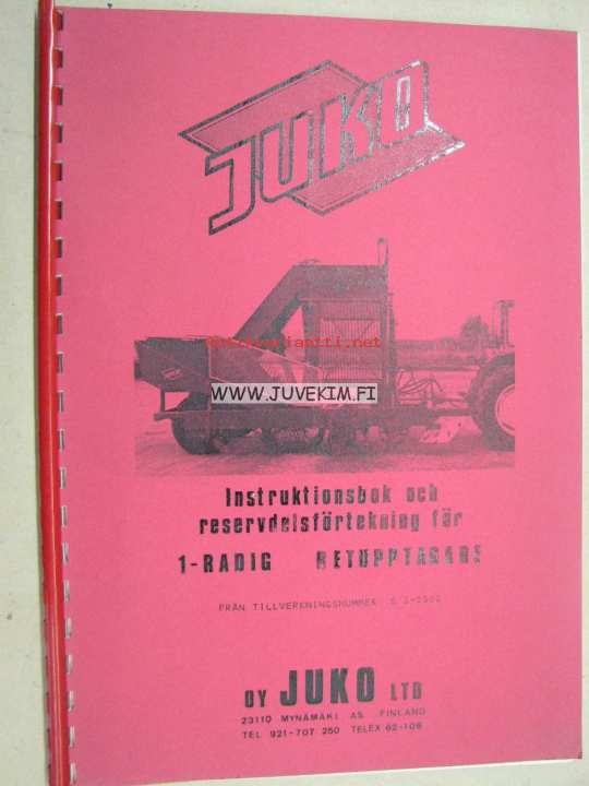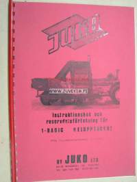 Juko 1-radig beteupptagare -instruktionsbok och reservdelsförteckning från tillverkningsnummer S- 1-2500