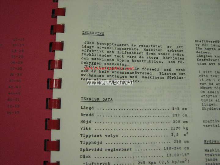 Oy Juko Ltd, 19?? A-4 kokoinen ohjekirja ja varaosaluettelo.