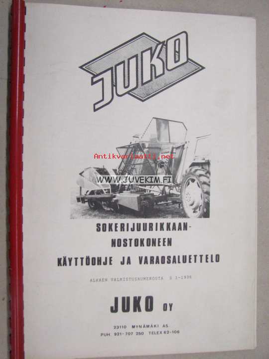 Juko sokerijuurikkaan nostokone -käyttöohje ja varaosaluettelo alkaen valmistusnumerosta S -1936