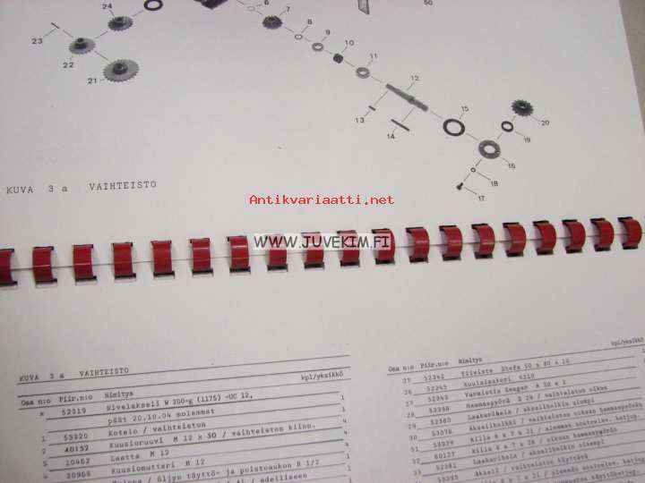 Juko Oy, 19?? A-4 kokoinen ohjekirja ja varaosaluettelo.