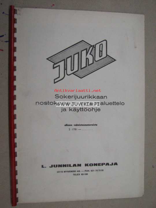 Juko Oy, 19?? A-4 kokoinen ohjekirja ja varaosaluettelo.