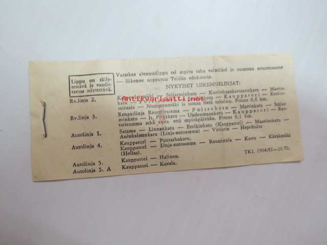 Turun Kaupungin Liikennelaitos TKL-ÅST 2kpl raitiotielippuja / bussilippuja nr:t 2625543, 2625542 - yhteennidottuina myydyt - käyttämättömät -tram / bus tickets