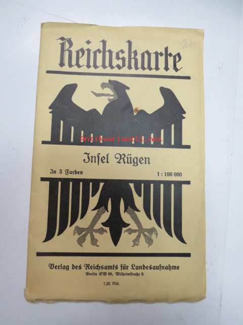 Reichskarte - Insel Rügen (Technische Hochschule Stuttgart - Geographisches Institut -natsileimoin) -map of Rügen with nazi-stamp