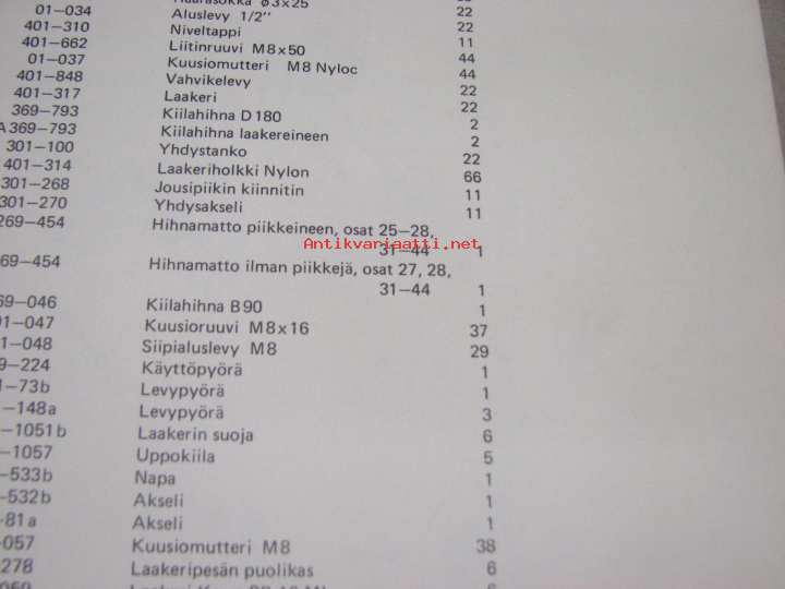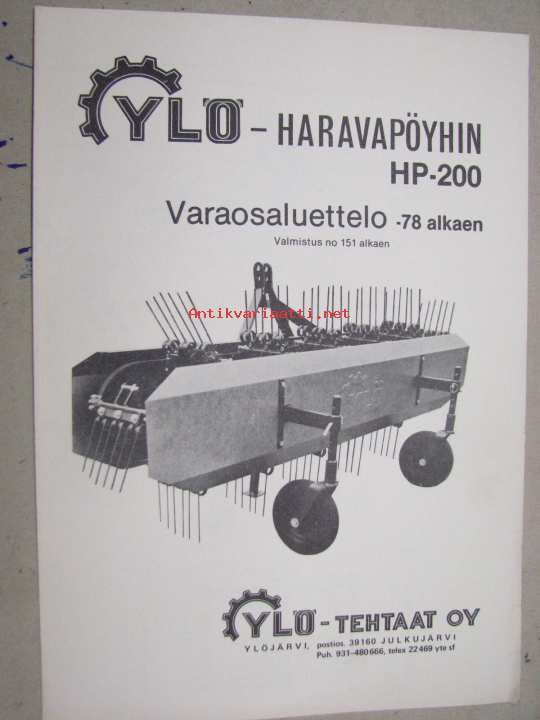 Ylö haravapöyhin HP-200 -varaosaluettelo vm. 1978, valmistusnumerosta 151 alkaen