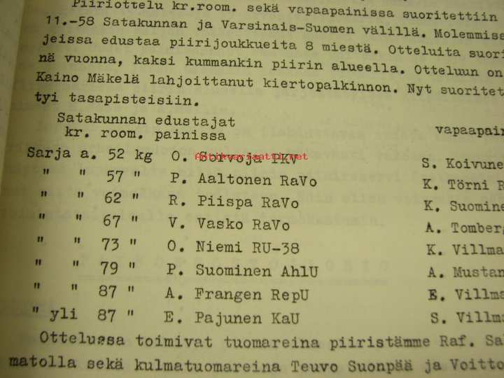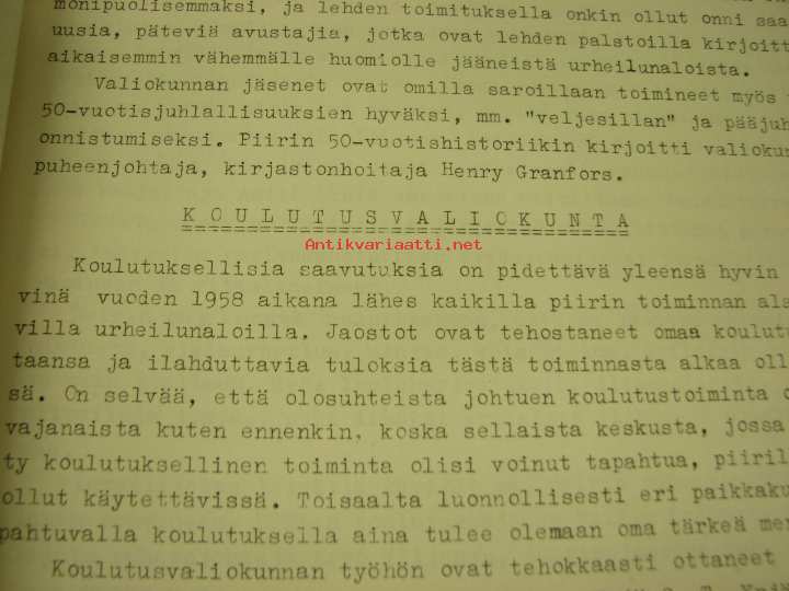 SVUL Satakunnan piirin toimintakertomus vuodelta 1958