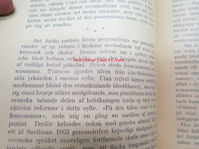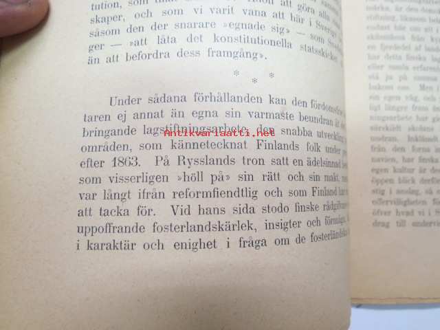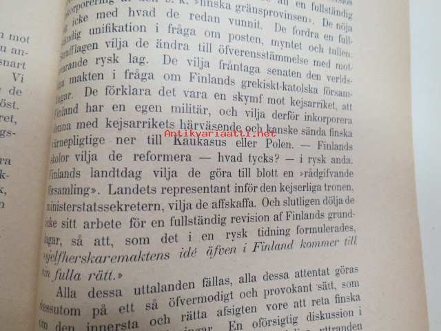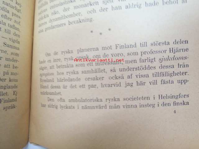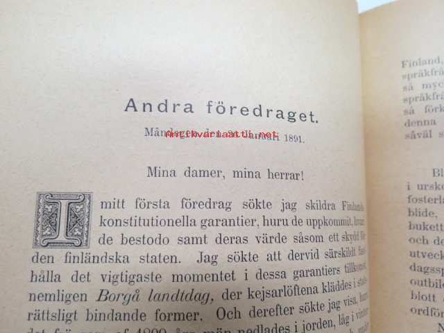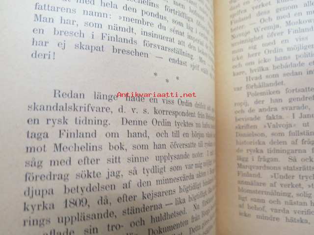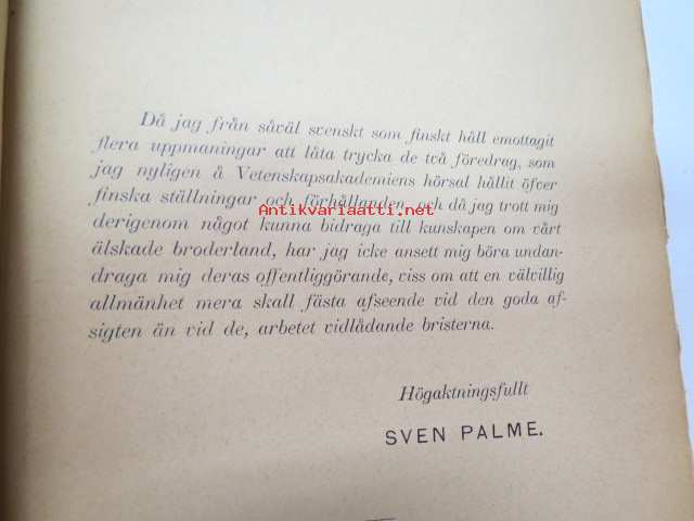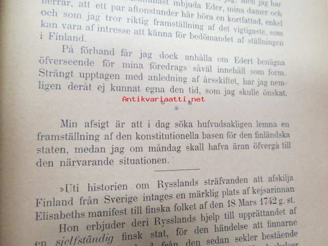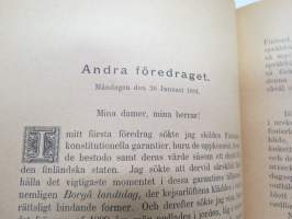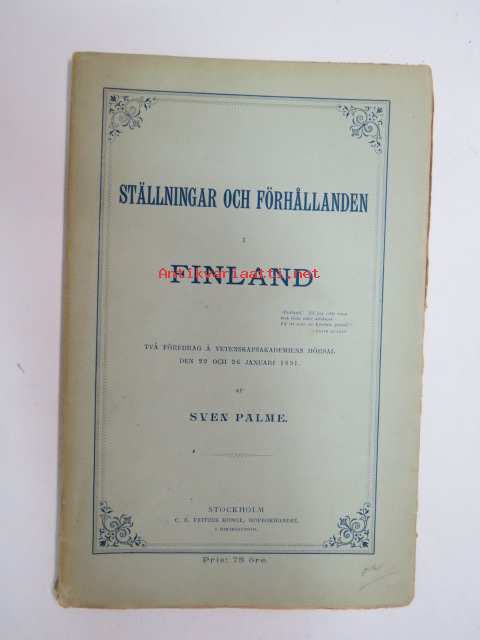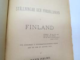 Ställningar och förhållanden i Finland - två föredrag å Vetenskapsakademiens hörsal den 22 och 26 januari 1891 af Sven Palme -aikanaan Venäjälle menetetyn Suomen tilanteen selvittelyä -situation in Finland, in swedish point of view