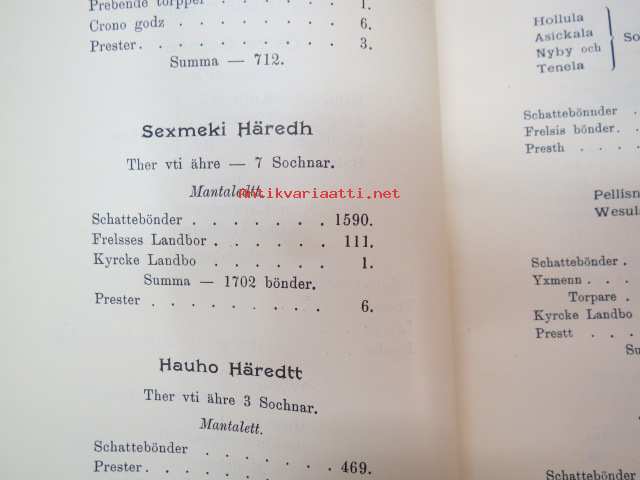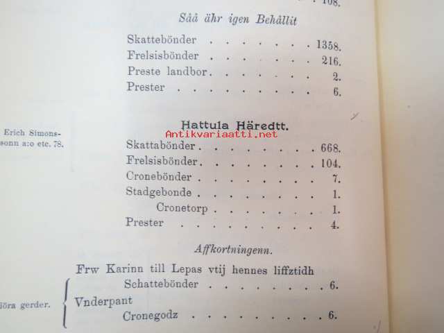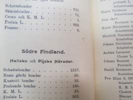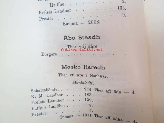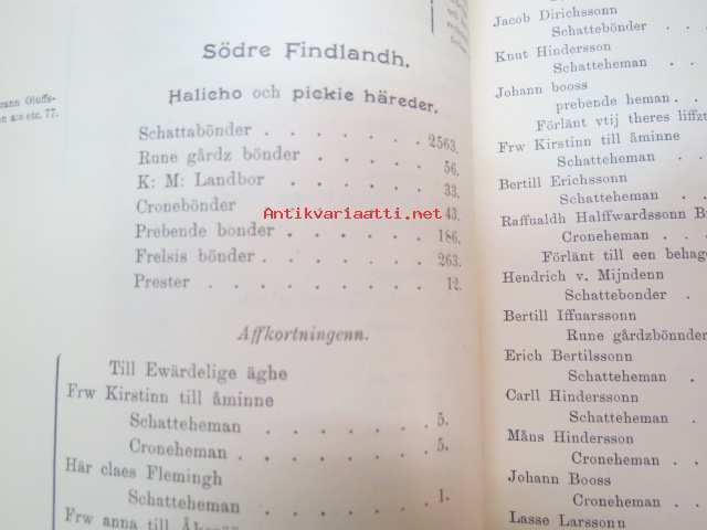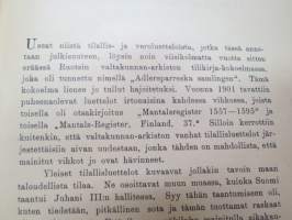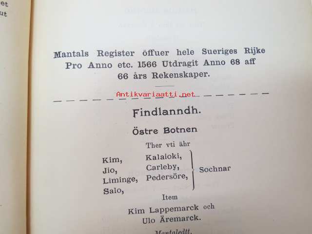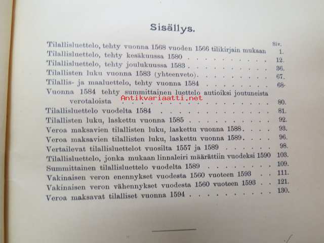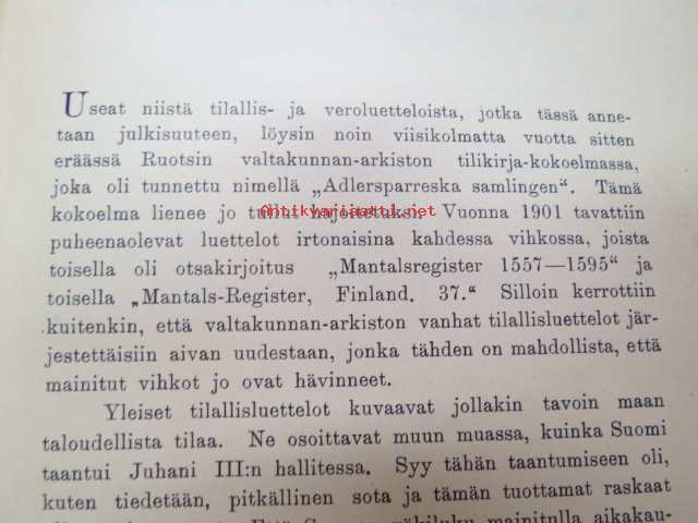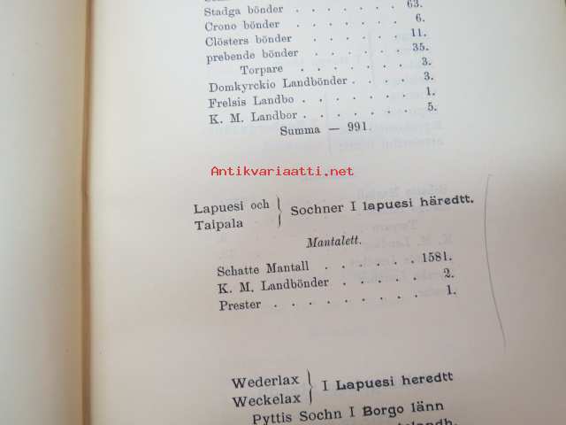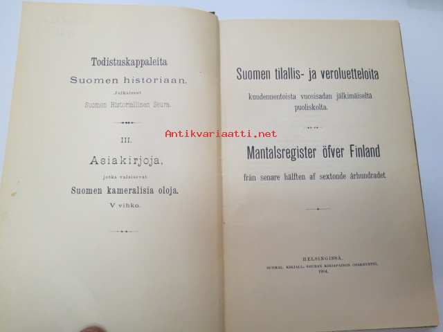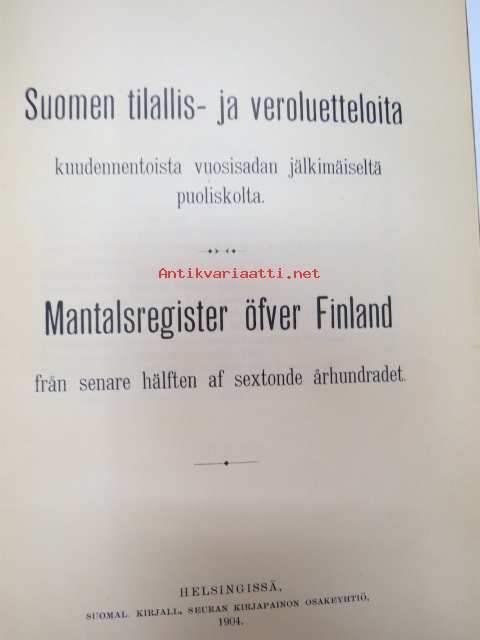 Todistuskappaleita Suomen historiaan III Asiakirjoja jotka valaisevat Suomen kameralisia oloja - asiakirjoja, jotka valaisevat Suomen Kameralisia oloja V vihko - suomen tilallis- ja veroluetteloita kuudennentoista vuosisadan jälkimmäiseltä puoliskolta. - Mantalsregister öfver Finland från senare hälften af sextonde århundradet. Helsinki 1904 -documents to Finnish history in 16th century