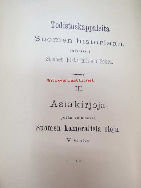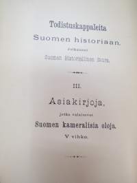 Todistuskappaleita Suomen historiaan III Asiakirjoja jotka valaisevat Suomen kameralisia oloja - asiakirjoja, jotka valaisevat Suomen Kameralisia oloja V vihko -
