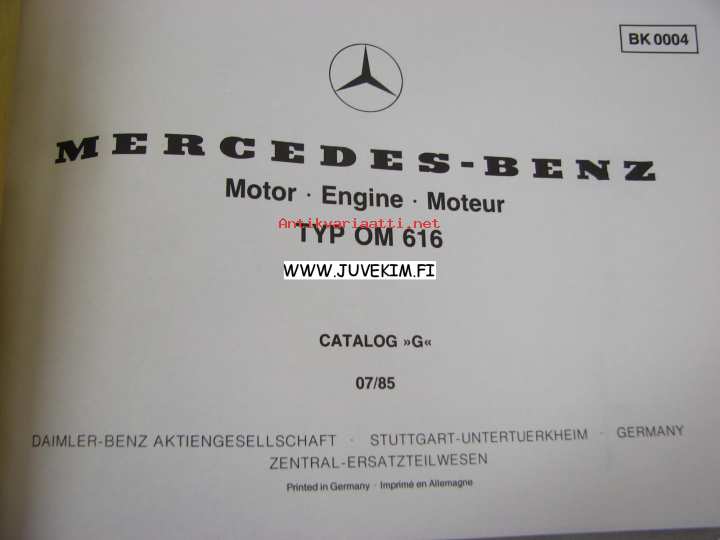 Mercedes-Benz Motor TYP OM 616 Catalog G 1985 -varaosaluettelo