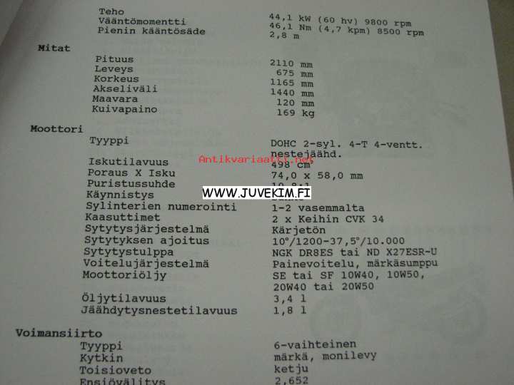 Kawasaki GPZ500S moottoripyörä -käyttöohjekirja