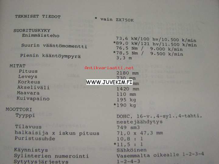 Kawasaki ZXR750 moottoripyörä -käyttöohjekirja