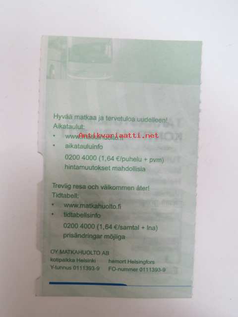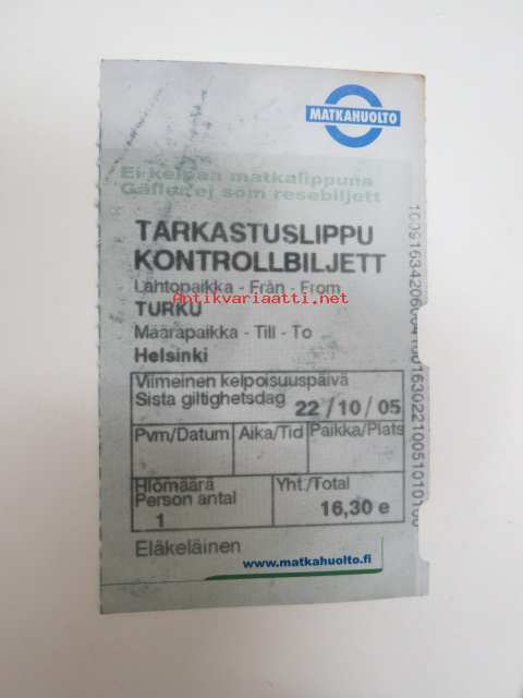 Matkahuolto tarkastuslippu / Kontrollbiljett 22.10.2005 -matkalippu / travel ticket