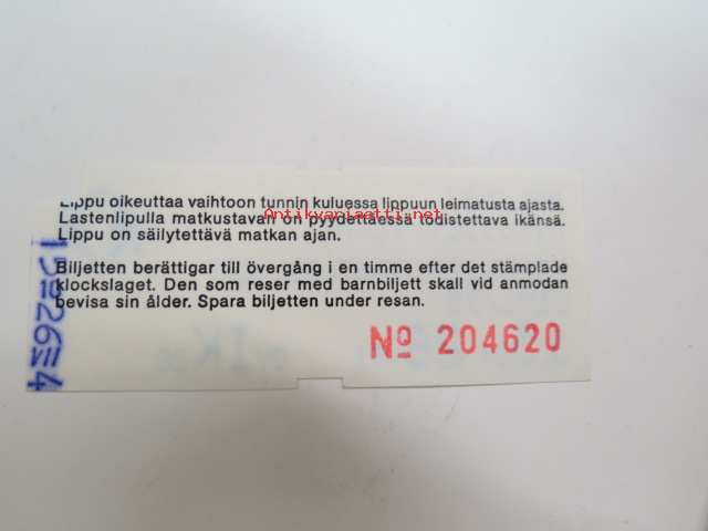 HKL/HST Aikuiset/Vuxna - Kertalippu 1101/95 nr 204624 -matkalippu / travel ticket