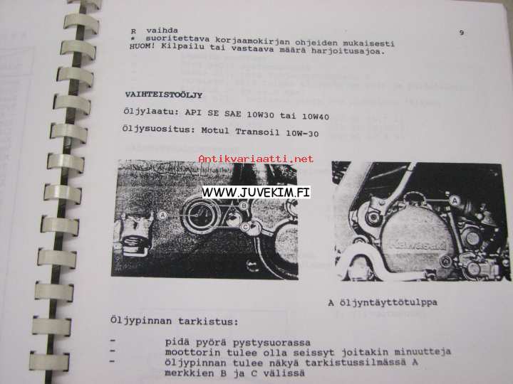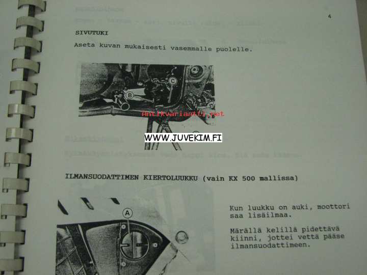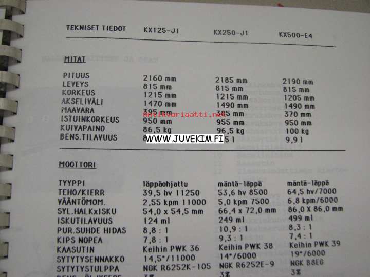 Kawasaki KX125, KX250, KX500 moottoripyörä -käyttöohjekirja