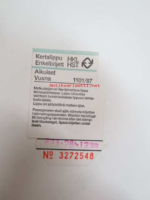 HKL/HST Helsinki 1101/87 Kertalippu - Enkelbilljett nr 3272548 Aikuiset/Vuxna - matkalippu / travel ticket