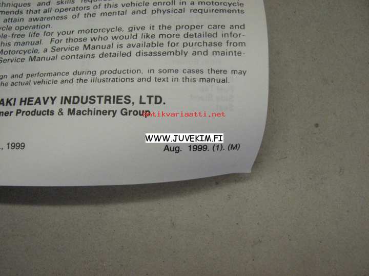Kawasaki Heavy Industries, 1999 10 x 15 cm käyttöohjekirja.
