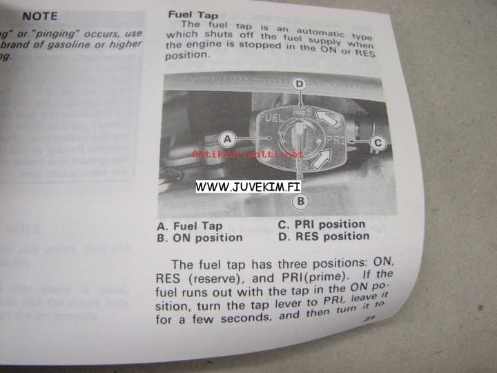 Kawasaki EN500 (EN500 C-4) motorcycle owner´s manual -käyttöohjekirja englanniksi