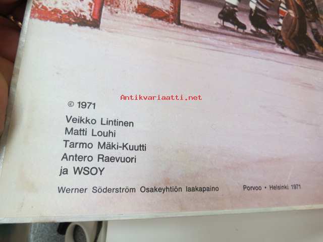 | Saatavilla | 0 kpl (Huom. tuote on myyty! / Sold out!) | | Julkaisuvuosi | 1971 | | Sivuja | 44 | | Painos | 1. | | Kunto | K2 | | Sidonta/painoasu | Kuvitettu kovakantinen | | Kielet | Suomi |