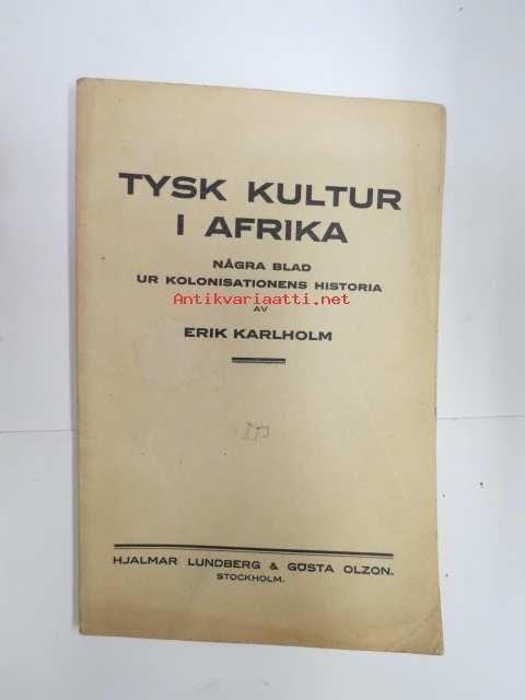 Erik Karlholm, Hjalmar Lundberg & Gösta Olzon, 1918 Tysk kultur i Afrika - Några blad ur kolonisationens historia -kirja esittelee saksalaisten siirtomaaherrojen julmia ja väkivaltaisia otteita alkuasukkaita kohtaan /comments on very cruel and violent misbehaviour against blacks in Africa(in German colonies) under the german rule 12 x 18 cm.