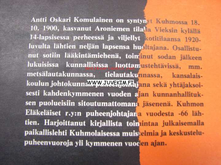 Komulainen Oskari, Oulun Kirjateollisuus Oy, 1975 15 x 21 cm kirja.