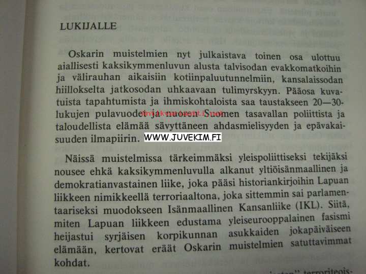 Kansalaissodan hiillokselta jatkosodan tulimyrskyyn Aroniemen Oskarin muistelmia 2