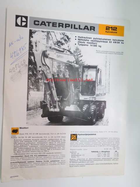 Caterpillar 212 Kaivukone -myyntiesite / brochure, excavator