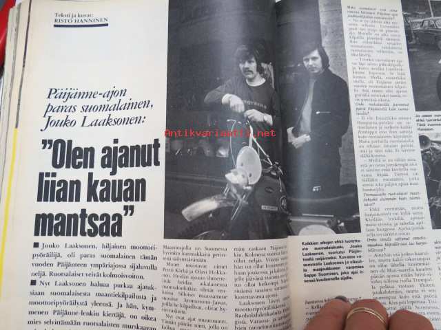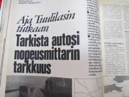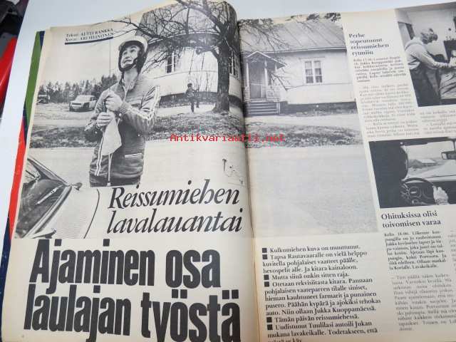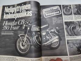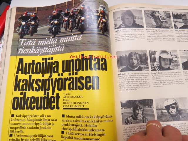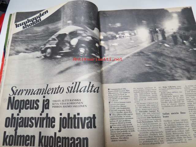 Tuulilasi 1973 nr 6, sis mm. seur. artikkelit / kuvat / mainokset; Kansikuva Jukka Kuoppamäki - Jukan mukana lavakeikalla, Austin Allegro, Kuukauden shokki - Surmanlento sillalta - selostus Aleksander (Sammy) Babitzinin ja kahden muun kuolemasta, Kuolema huipulla - Jarno Saarinen, Unionilta "puna-mustat" henkarit Union-lanteilla, Honda CB 350 Four koeajo, ym.21 x 29 cm.