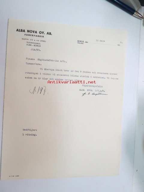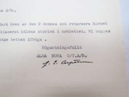 Alfa Nova OY. AB. Fanerfabrik, Borgå, 10.3.1936 - Suomen Sahanterätehdas Oy, Tampere -asiakirja -business document