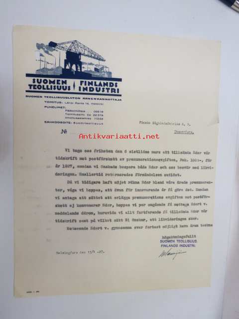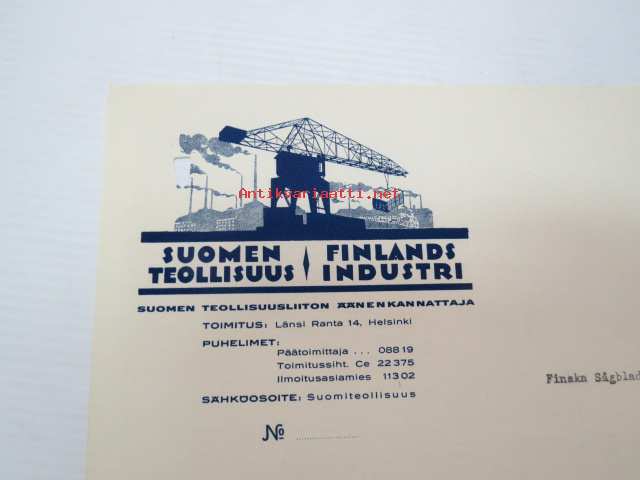 Suomen Teollisuus - Finlands Industri, Helsinki, 13.4.1927 - Suomen Sahanterätehdas Oy / Finska Sågblads Aktiebolag, Tampere -asiakirja -business document