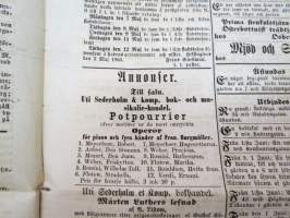 Hufvudstadsbladet Lördagen den 5 Maj 1866, innehåller bl.a följande artiklar / reklam / notiser; På börserna råder stor panique, Herr Wohllebe - blinde