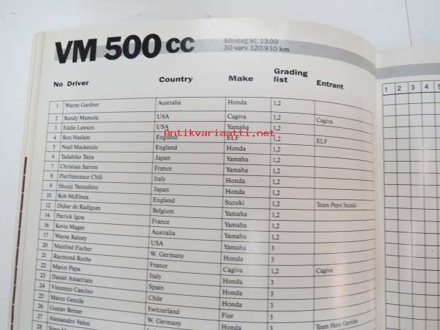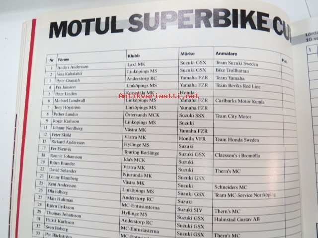 Swedish TT Anderstorp 11-14 Augusti 1988 -ohjelma / program