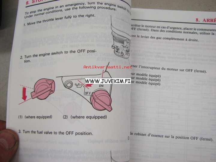 Yamaha YFM80RV Owner´s manual, Manuel du proprietaire, Manual del propietario -moottoripyörä, käyttöohjekirja englanniksi, italiaksi, espanjaksi