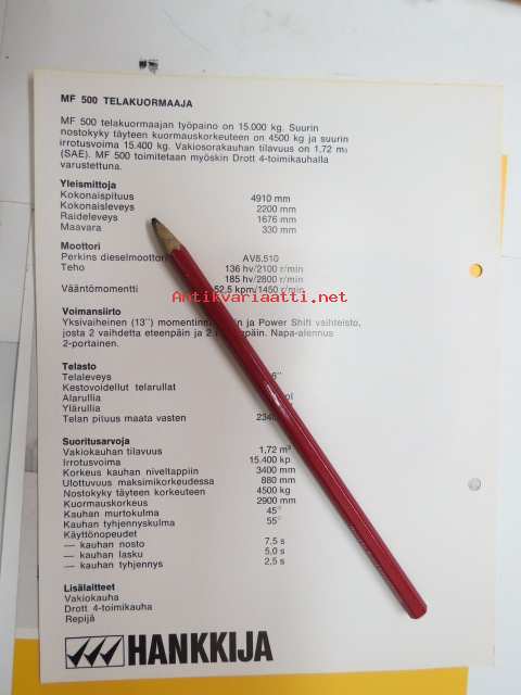 Massey-Ferguson F 500 telakuormaaja -myyntiesite / loader brochure