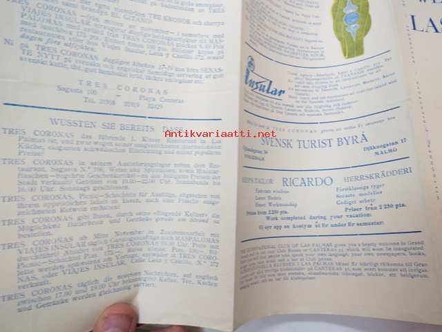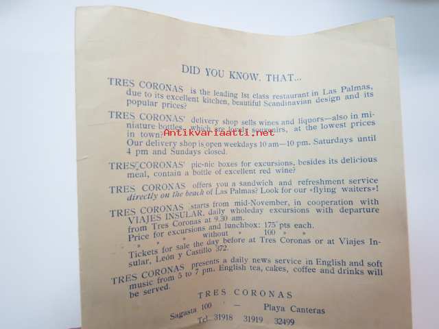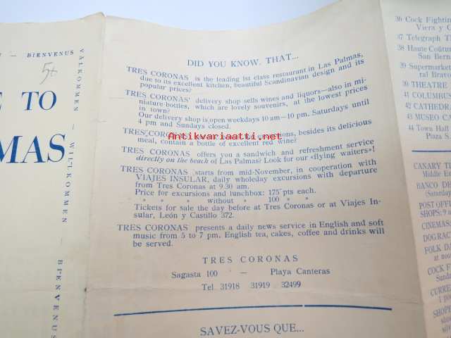Welcome to Las Palmas and restaurant Tres Coronas -monikielinen esite ja kartta / map and brochure, multilingual