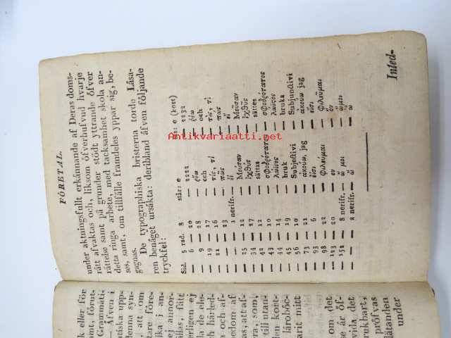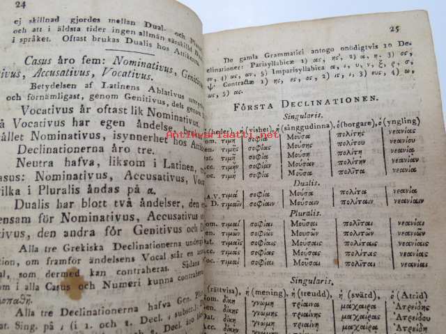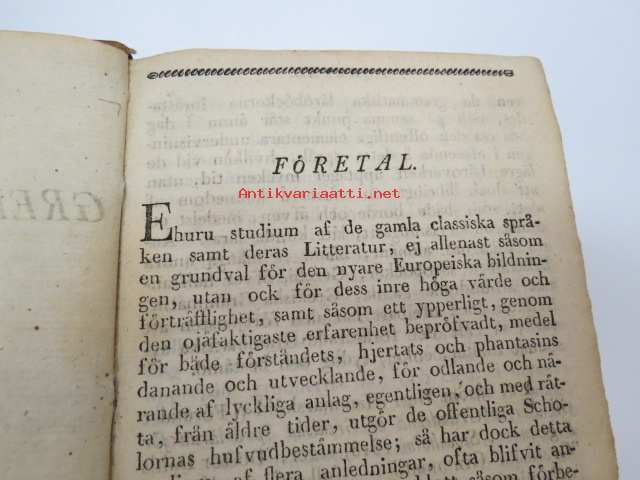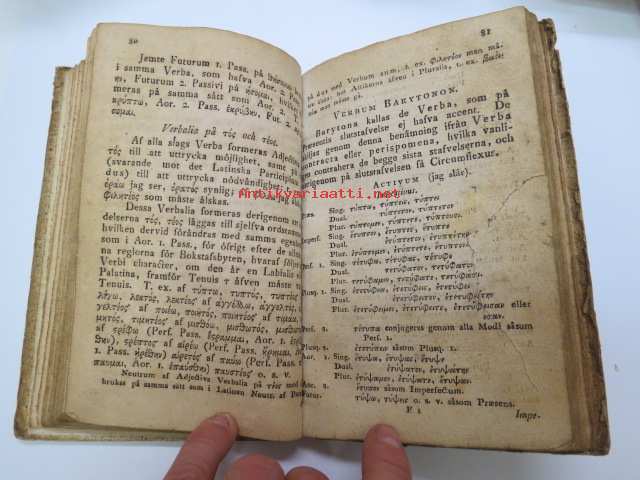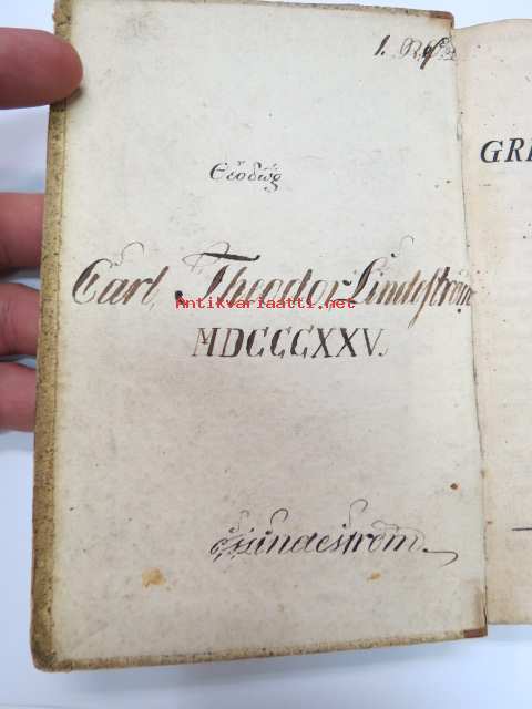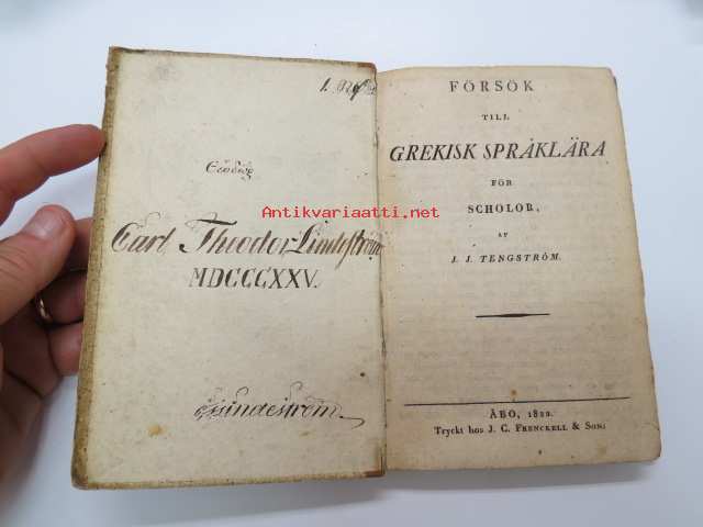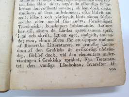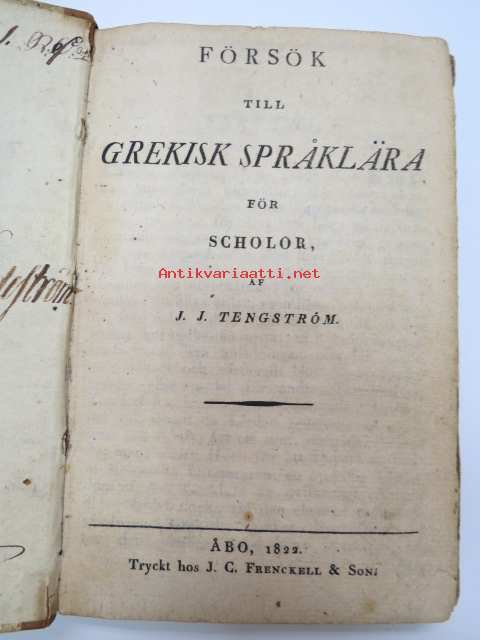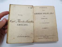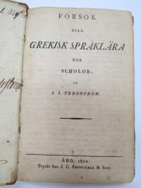 Försök till grekisk språklära för Scholor av. J.J. Tengström, Åbo 1822 (ex Carl Theodor Lindström) -graek grammar - school book