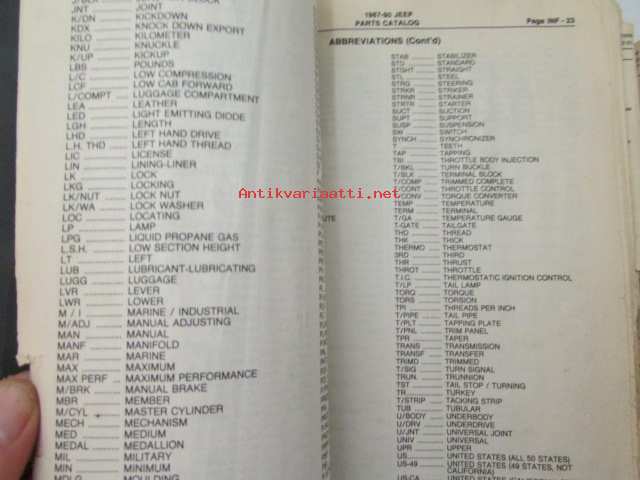 Chrysler Motors Jeep 1987-90, Parts Catalog -varaosaluettelo