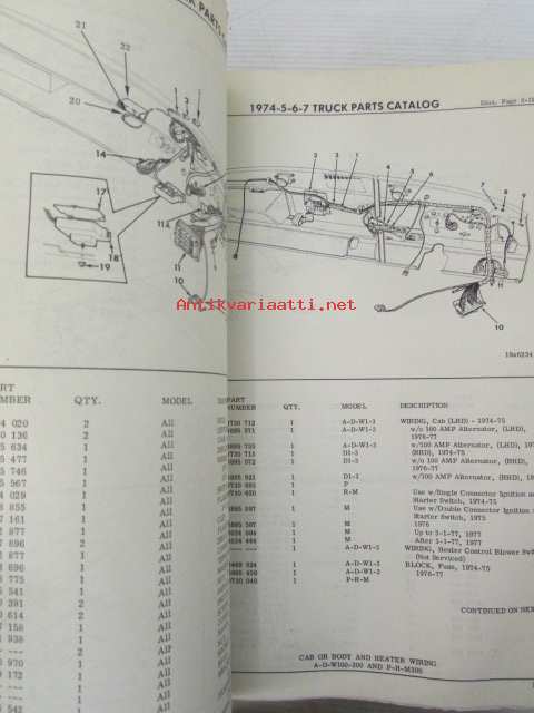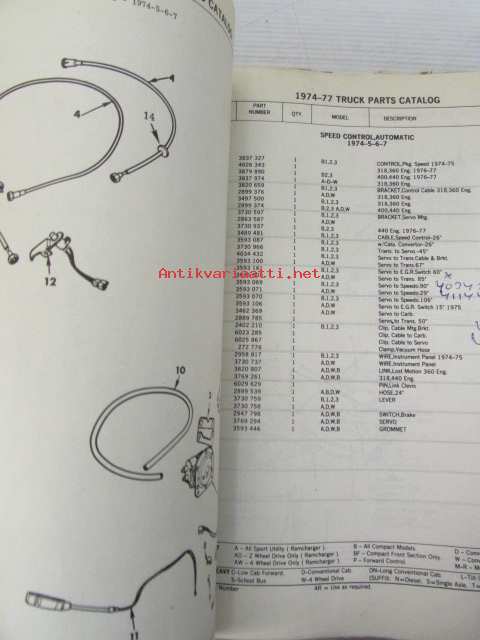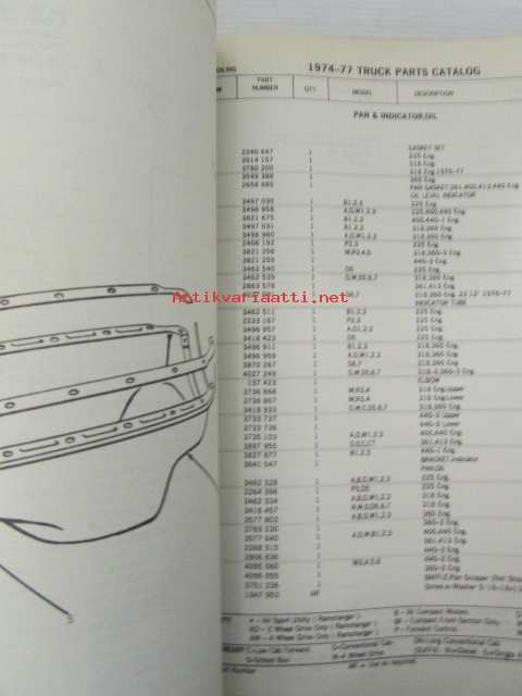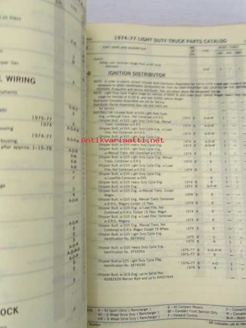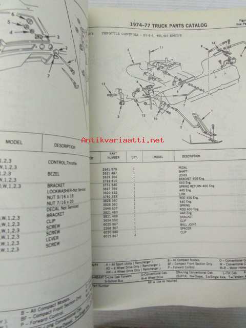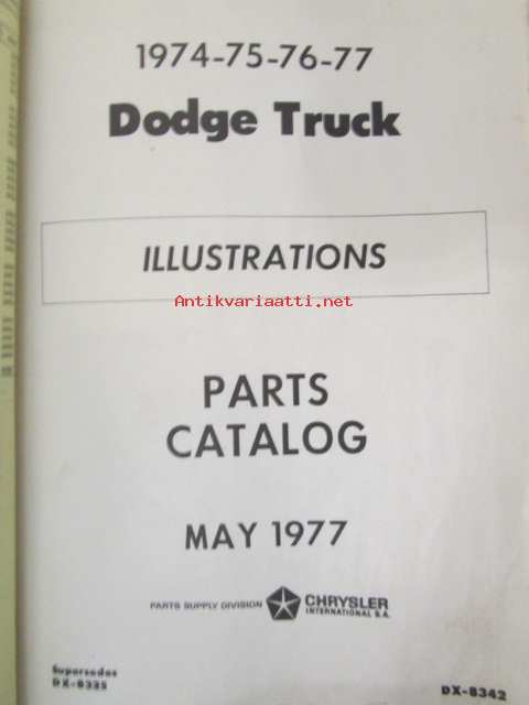 Chrysler Motors Dodge Truck Illustration 1974-77, Parts Catalog (Supersedes DX-8325) -varaosaluettelo