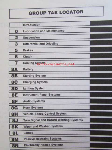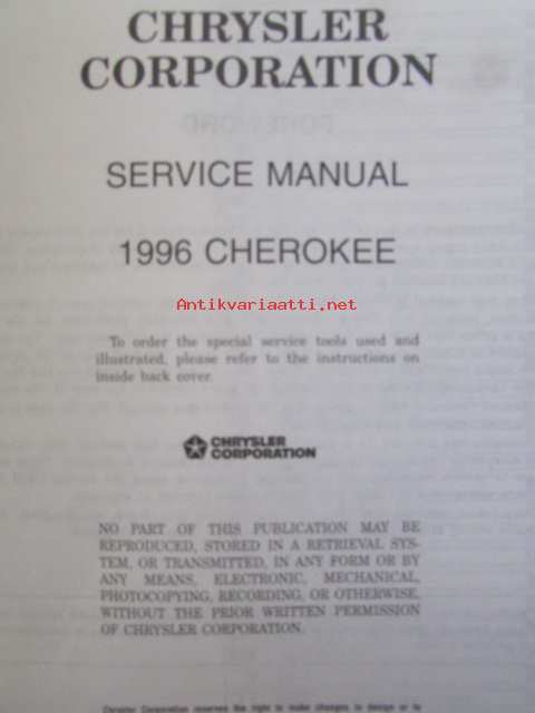 Chrysler Jeep Grand Cherokee Service Manual 1996, 2 Wheel Drive / 4 Wheel Drive -Korjaamokäsikirja