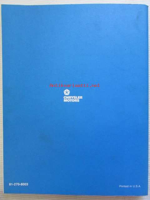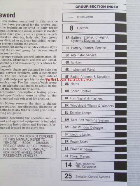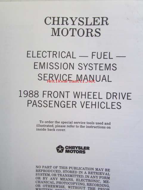 Chrysler Motors Electrical, Fuel, Emission System Service Manual 1988 - Front wheel drive Passenger Vehicles -Korjaamokäsikirja