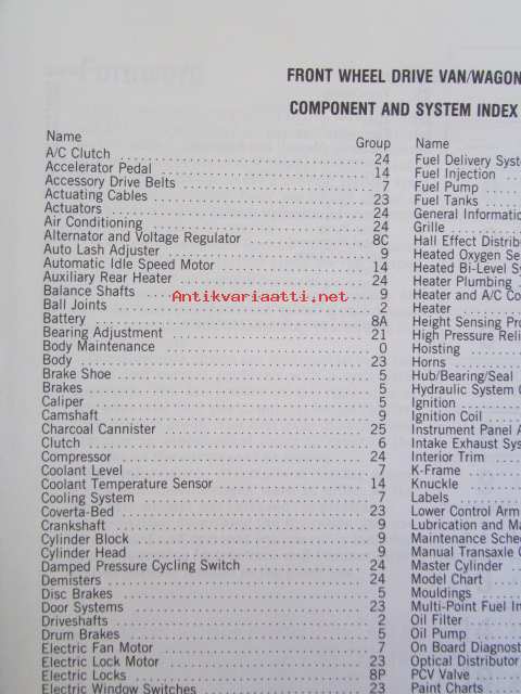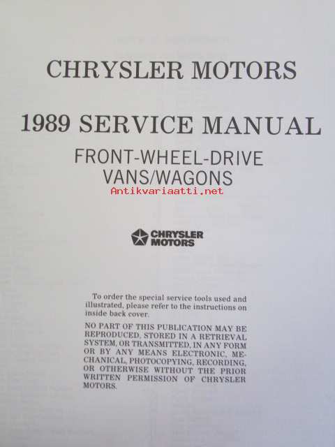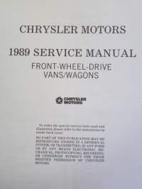 Chrysler Motors System Ram Van / Caravan / Voyager Service Manual 1989 - Front wheel drive Van/Wagon -Korjaamokäsikirja