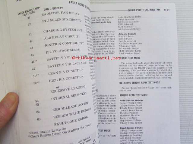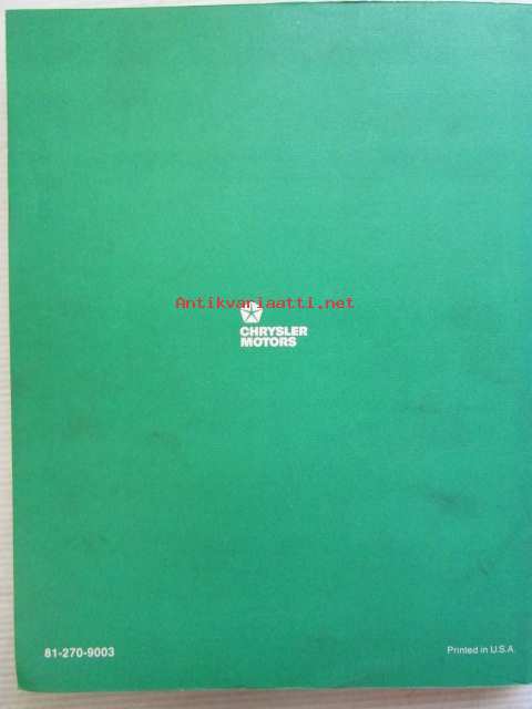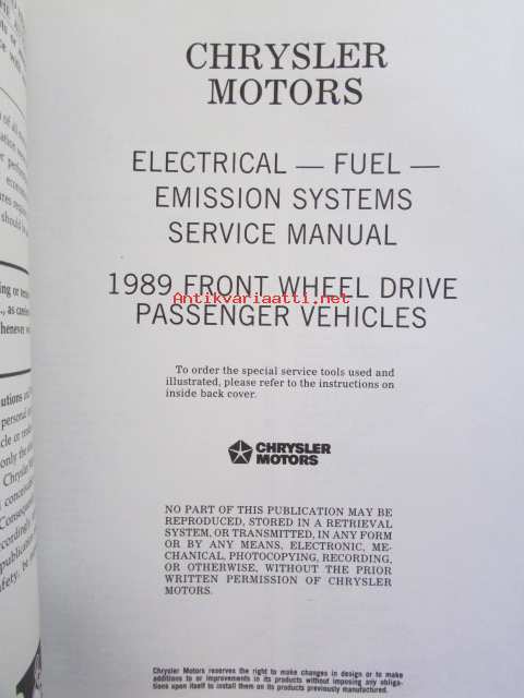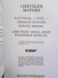 Chrysler Motors Electrical, Fuel, Emission System Service Manual 1989 - Front wheel drive Passenger Vehicles -Korjaamokäsikirja