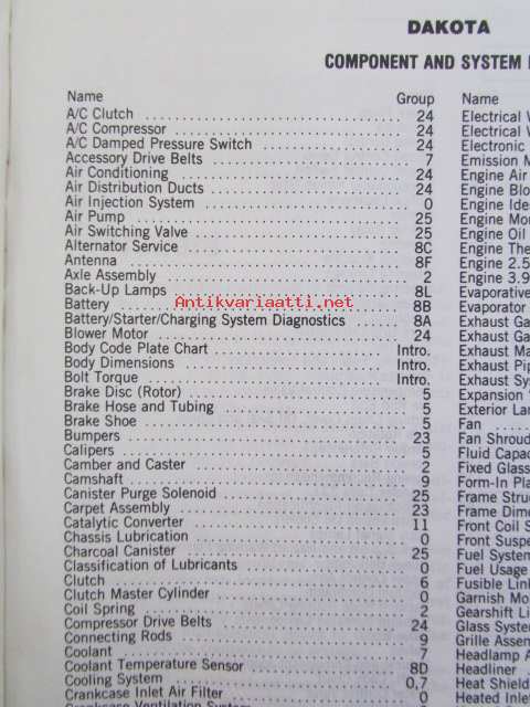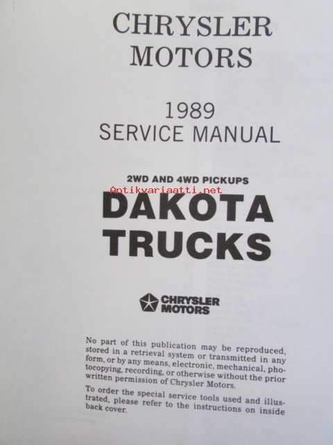 Chrysler Motors Dakota Trucks 2WD and 4WD Pickups Service Manual 1989 - Rear-Wheel-Drive Truck -Korjaamokäsikirja