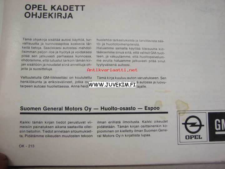 Opel / GM, 1984 15 x 21 cm käyttöohjekirja.