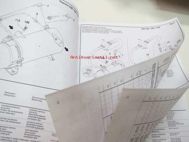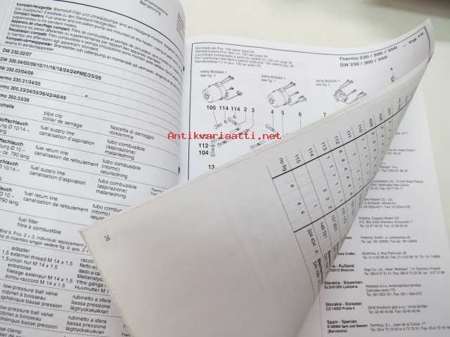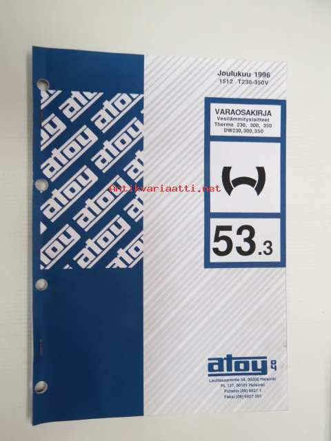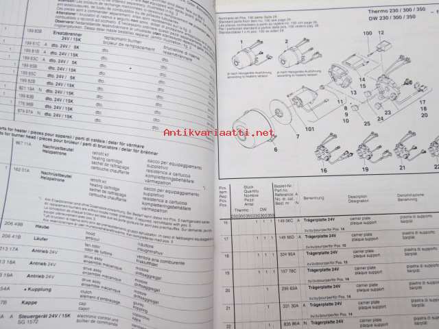 Webasto Vesilämmityslaitteet Thermo 230, 300, 350, DW 230, DW 300, DW 350 - 53.3, joulukuu 1996 - 1512 T230-350 V Varaosakirja -parts book for heaters, in finnish